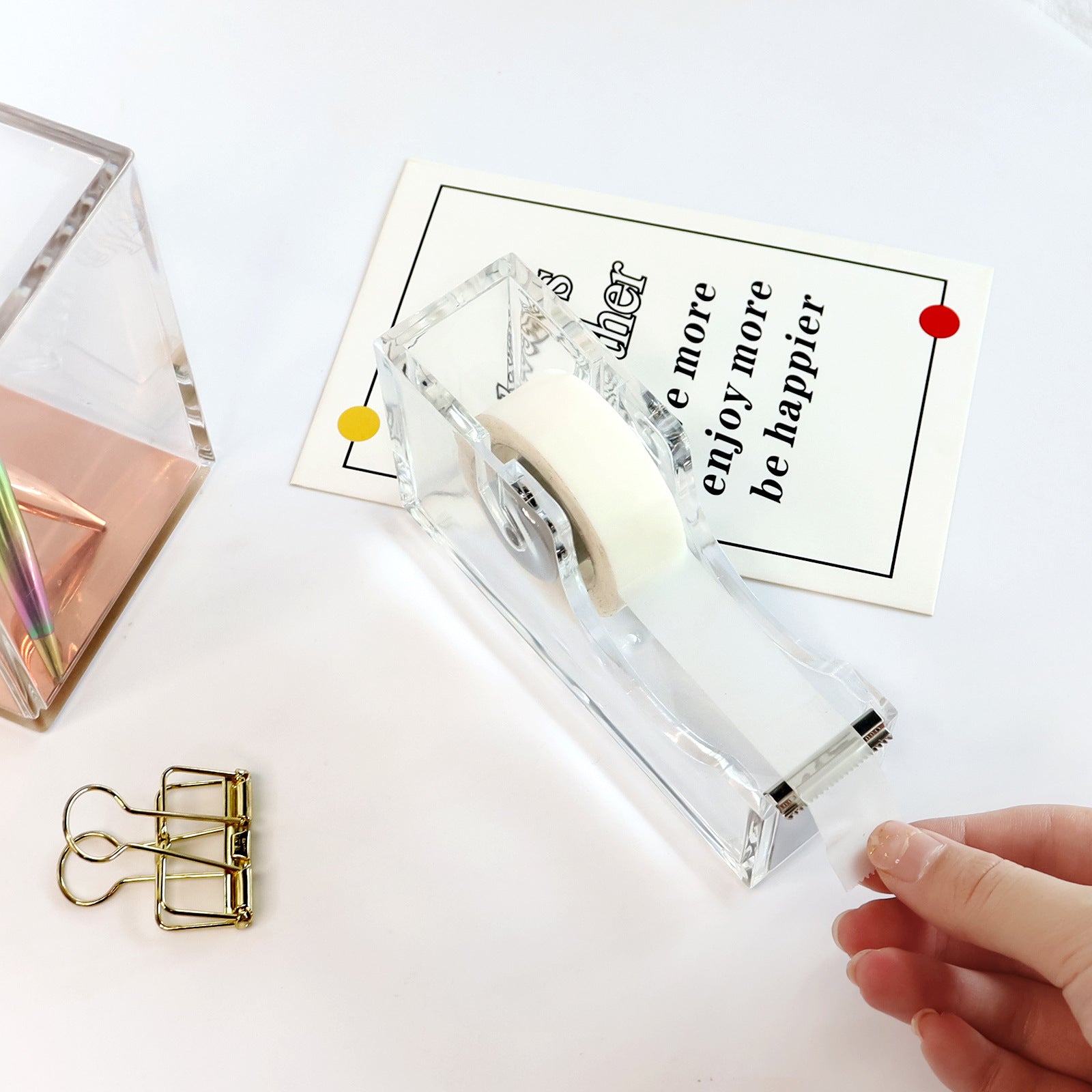 Sleek and stylish clear acrylic rosegold tape dispenser,Fits standard 1 Inch rolls of tape(diameter)