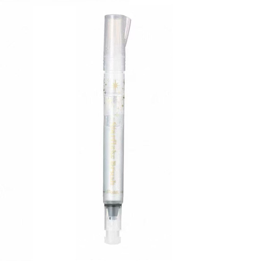 Acest stilou cu pensulă cu sclipici are cerneală transparentă, incoloră, plină cu sclipici fin, perfect pentru a fi aplicat peste litere sau ilustrații pentru a adăuga un finisaj strălucitor. Poți controla ușor nivelul de strălucire aplicând mai multe straturi.