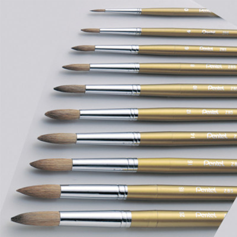 Pentel Horse Hair Watercolor Brush - Series ZBS1 - Round (No.0) - 3 Pack