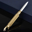 Vylepšite svoje každodenné nosenie s naším Mini mosadzným multifunkčným nožíkom. Navrhnutý pre pohodlie a odolnosť, tento kompaktný nástroj kombinuje tri užitočné funkcie v jednom elegantnom kúsku: ostrú čepeľ z nehrdzavejúcej ocele na otváranie balíkov alebo rezanie pásky, pevnú mosadznú rukoväť, ktorá slúži aj ako otvárač na fľaše, a ľahký prívesok na kľúče pre jednoduchú prenosnosť.
