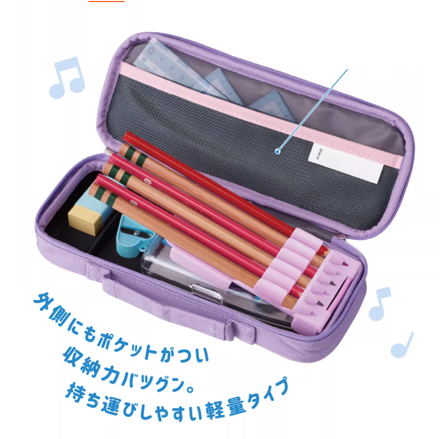 Ta funkcionalni etui za pisala je odličen za prenašanje različnih umetniških in ustvarjalnih pripomočkov. Etui leži ravno, ko je odprt, kar omogoča enostaven dostop do vsebine. Odstranljiva plošča ima elastične zanke za držanje pisal in svinčnikov. Plošča je pritrjena na notranjost etuija z ježkom in jo je mogoče odstraniti ali obrniti navzgor, da razkrije velik predal za škarje, lepilni trak in druge pripomočke. Mrežast žep na notranji strani pokrova etuija je primeren za manjše predmete, kot so radirke, režni žep na zunanji zadnji strani etuija pa omogoča hiter dostop do dodatnih stvari. Etui je tanek, lahek in ima stranski ročaj, kar olajša prenašanje ali shranjevanje v torbo ali nahrbtnik. Etui je ojačan s trdno podlogo, ki mu pomaga ohranjati obliko in ščiti vsebino.