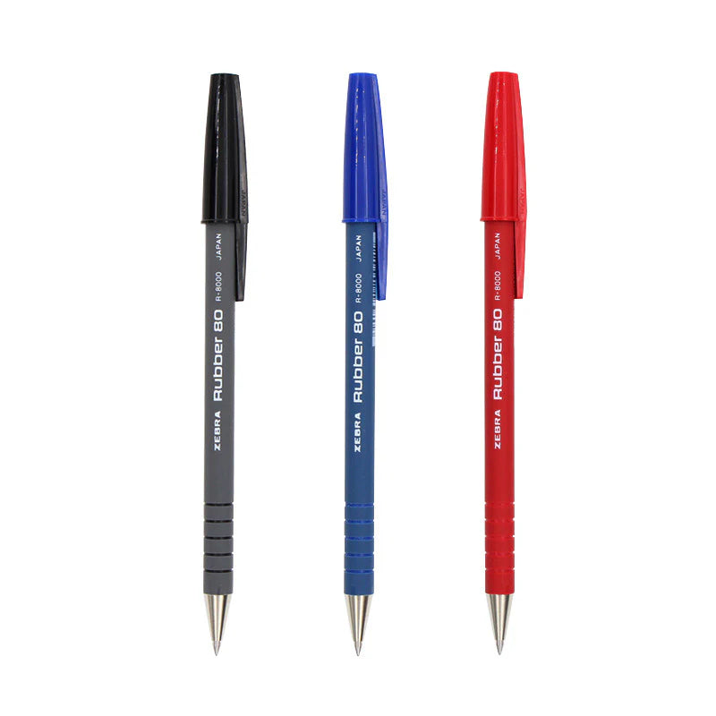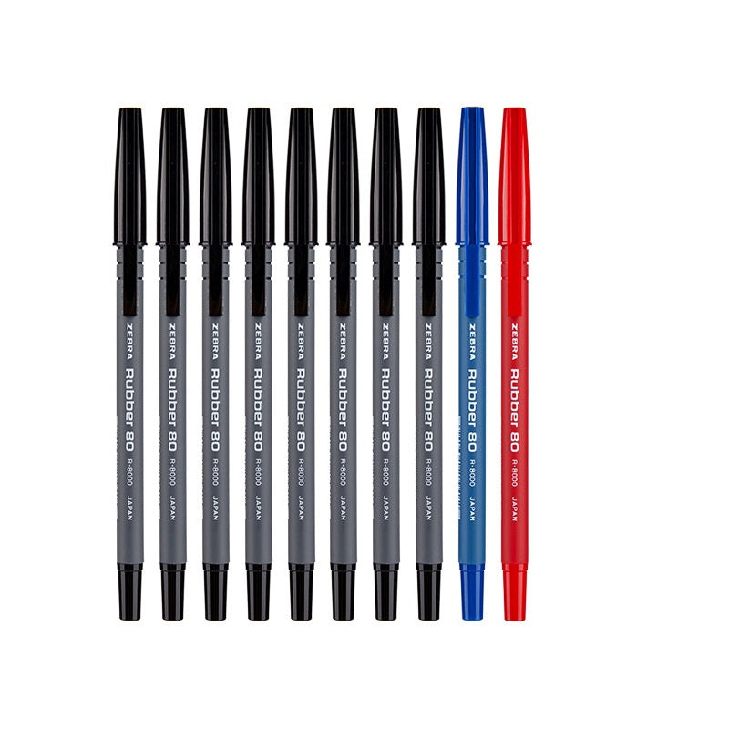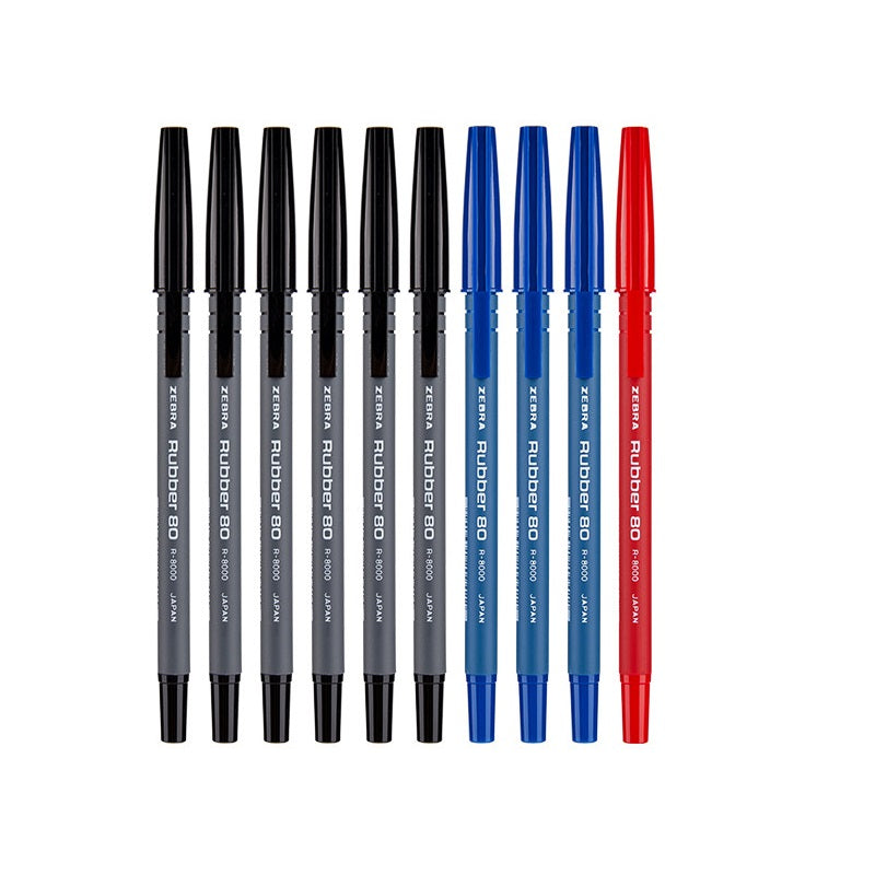 Kemični svinčnik Zebra Rubber 80 R-8000 s konico 0,7 mm, črno/rdeče/modro, 10 kosov