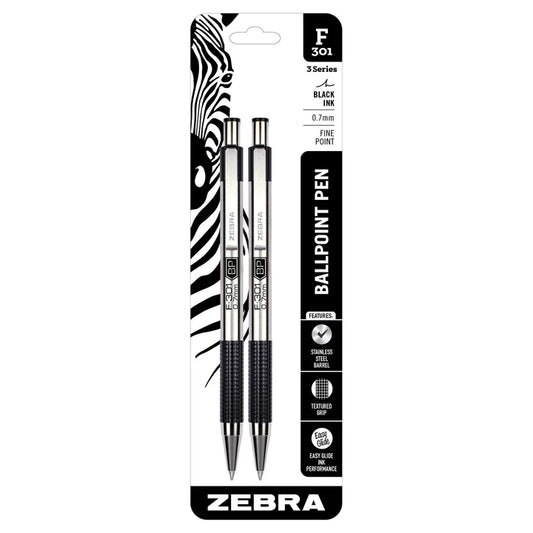 Zebra F-301 Inskjutbar Kulspetspenna, Fin spets, 0,7 mm, Svart bläck, 2-pack Perfekt bärbar stålpenn med...