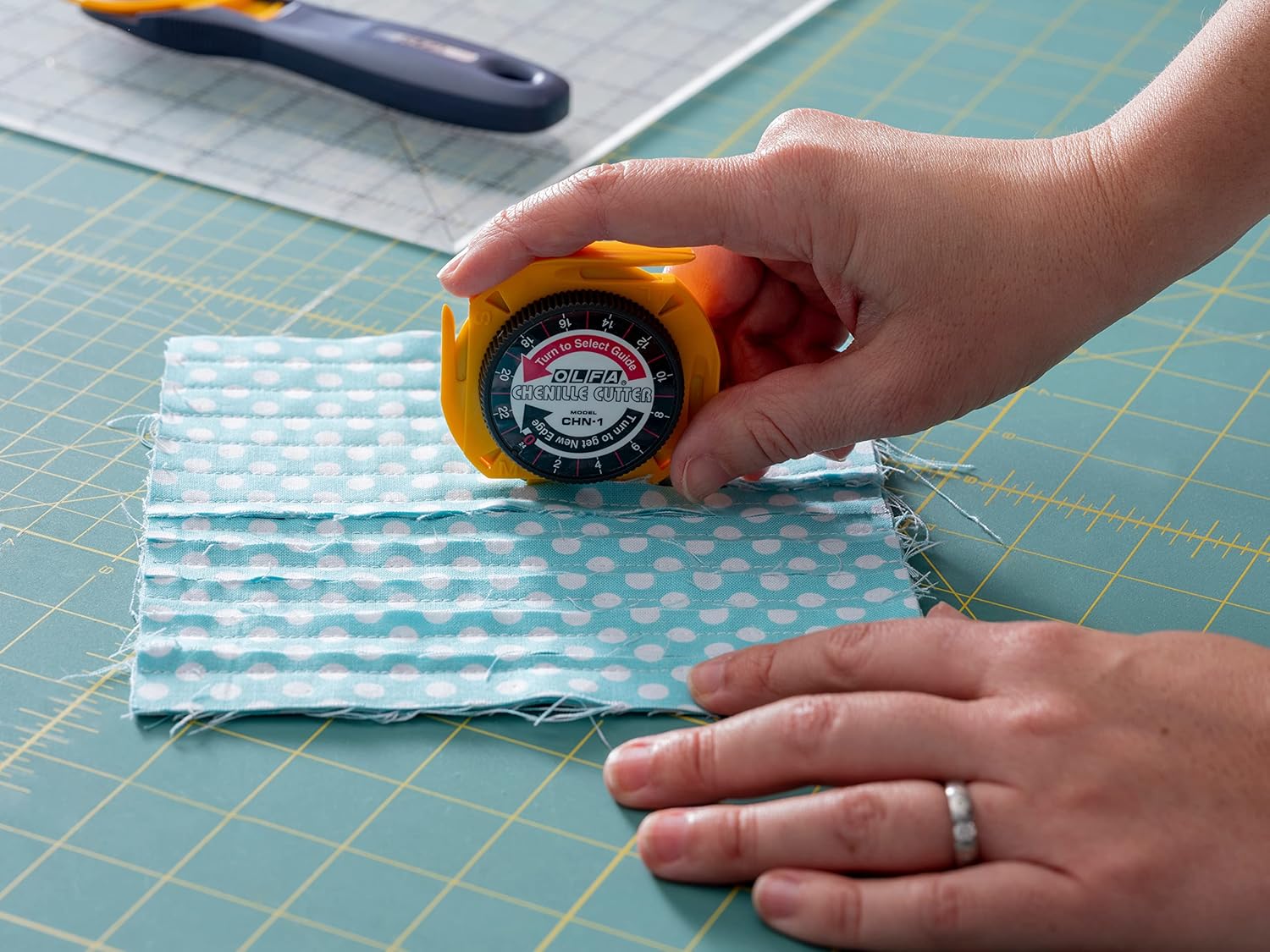 PERFEKT FÖR DEKORATIVA SKÄRNINGAR - Vår specialskärare tillför vacker textur och dimension till sömnads- eller quiltprojekt. Chenille Cutter skär enkelt flera lager tyg, samt papper, kartong, filt, fleece och mer.