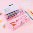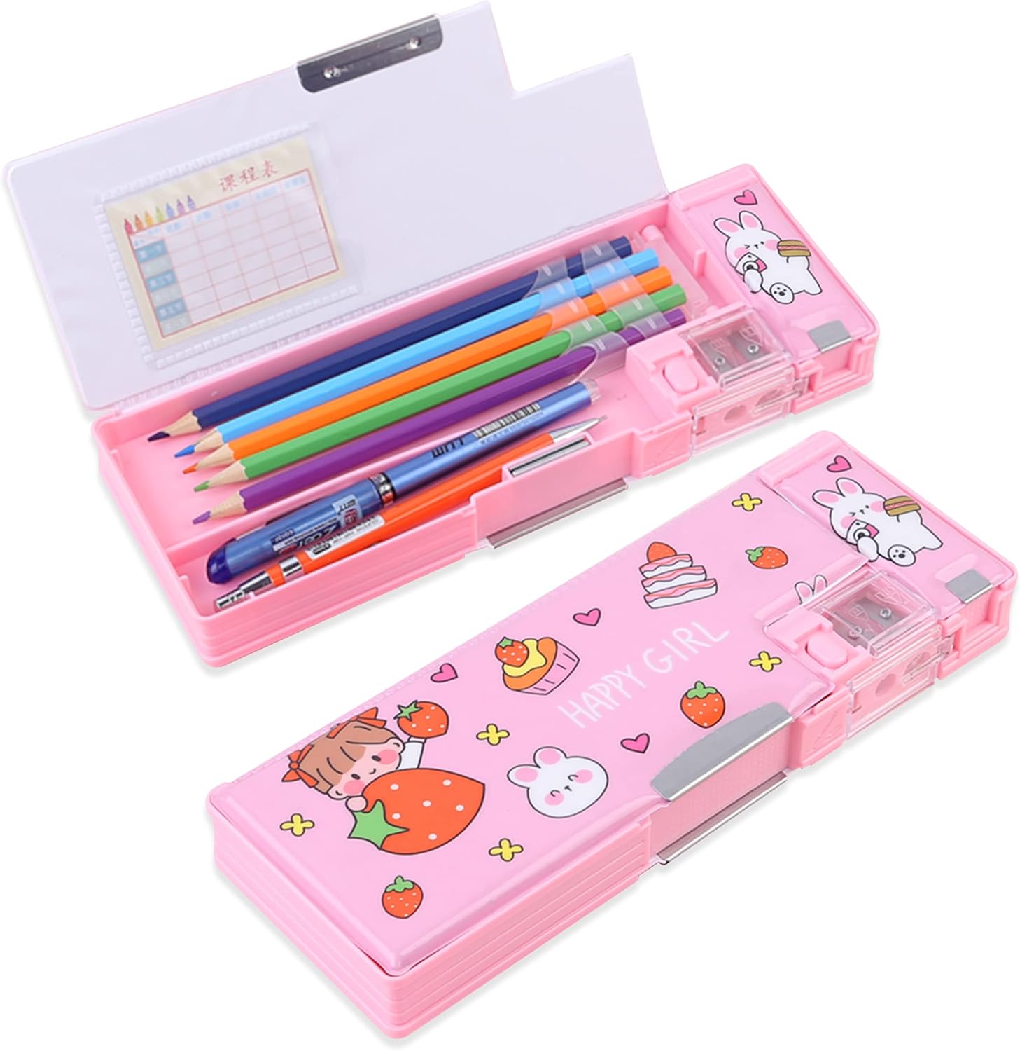 Pop Up multifunktionell pennfodral för flickor och pojkar, söt tecknad pennlåda organiserare för skrivmaterial med vässare, schema, skolmaterial, bästa födelsedagspresenter för barn【Pink-Strawberry】