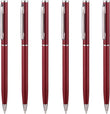 Tunna metalliska indragbara kulspetspennor - matt vinröd, fin present till företagskontorsstudenter Lärare Bröllopsjul, Medium Point(1 mm) 6 Pack-svart bläck